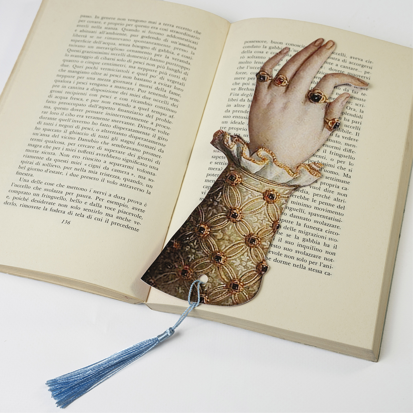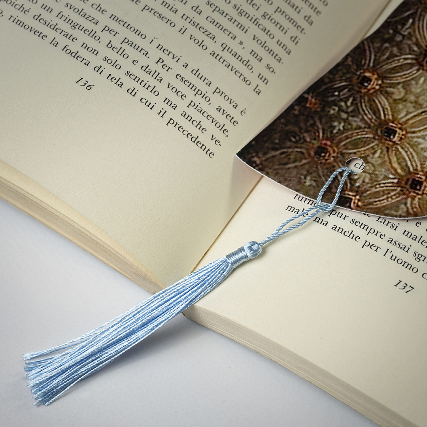 Segnalibro in cartoncino rigido con nappa fatta a mando in seta.