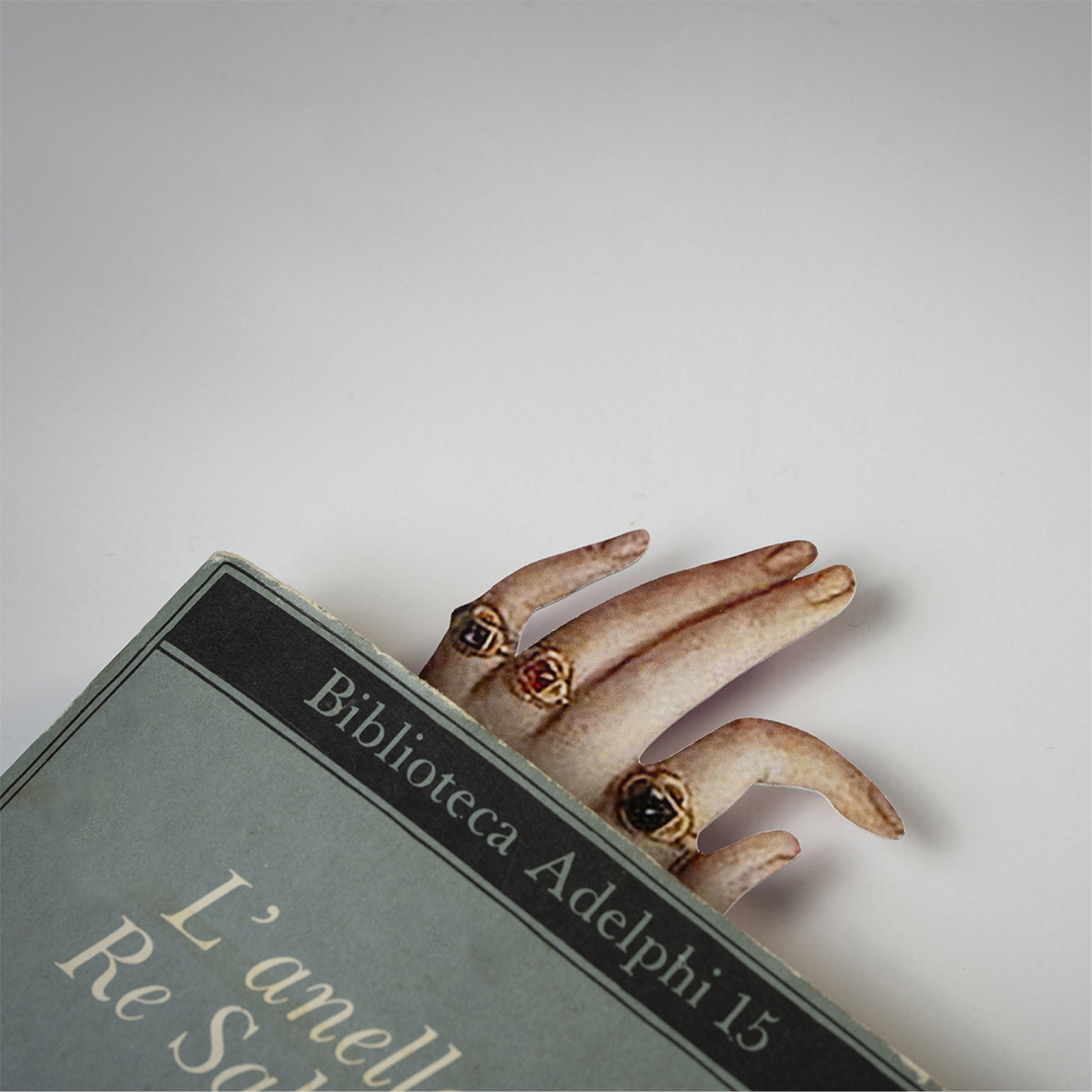 Il segnalibro viene presentato con una cartolina a forma di copertina di un libro.